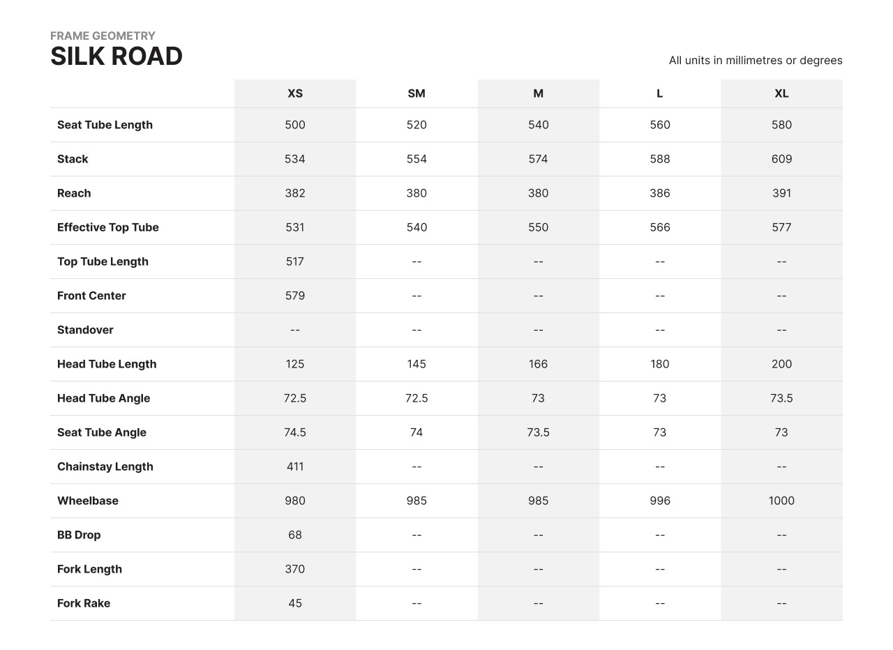 | Options | XS/50cm Sml/52cm Med/54cm CURRENTLY UNAVAILABLE Lge/56cm XL/58cm |
