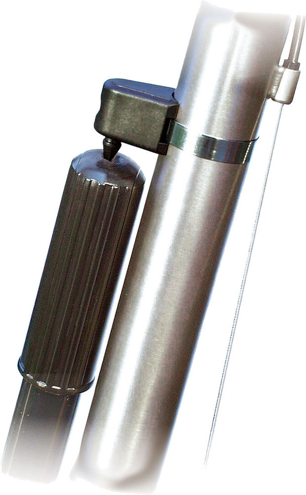 Universal pump holder. All pump sizes can be fixed between Pumpfix and the frame. Easy mounting with stainless steel strap on frames sized Ø 15-60mm.