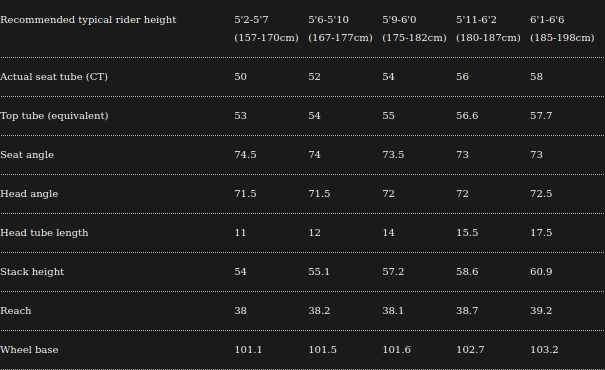 | Tyres | Schwalbe One HS462A Folding 28-622, 30-622 (many other Schwalbe options available, including tubeless) |